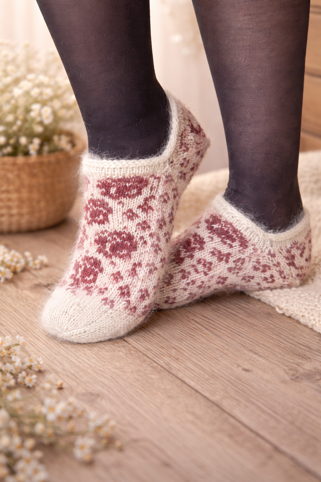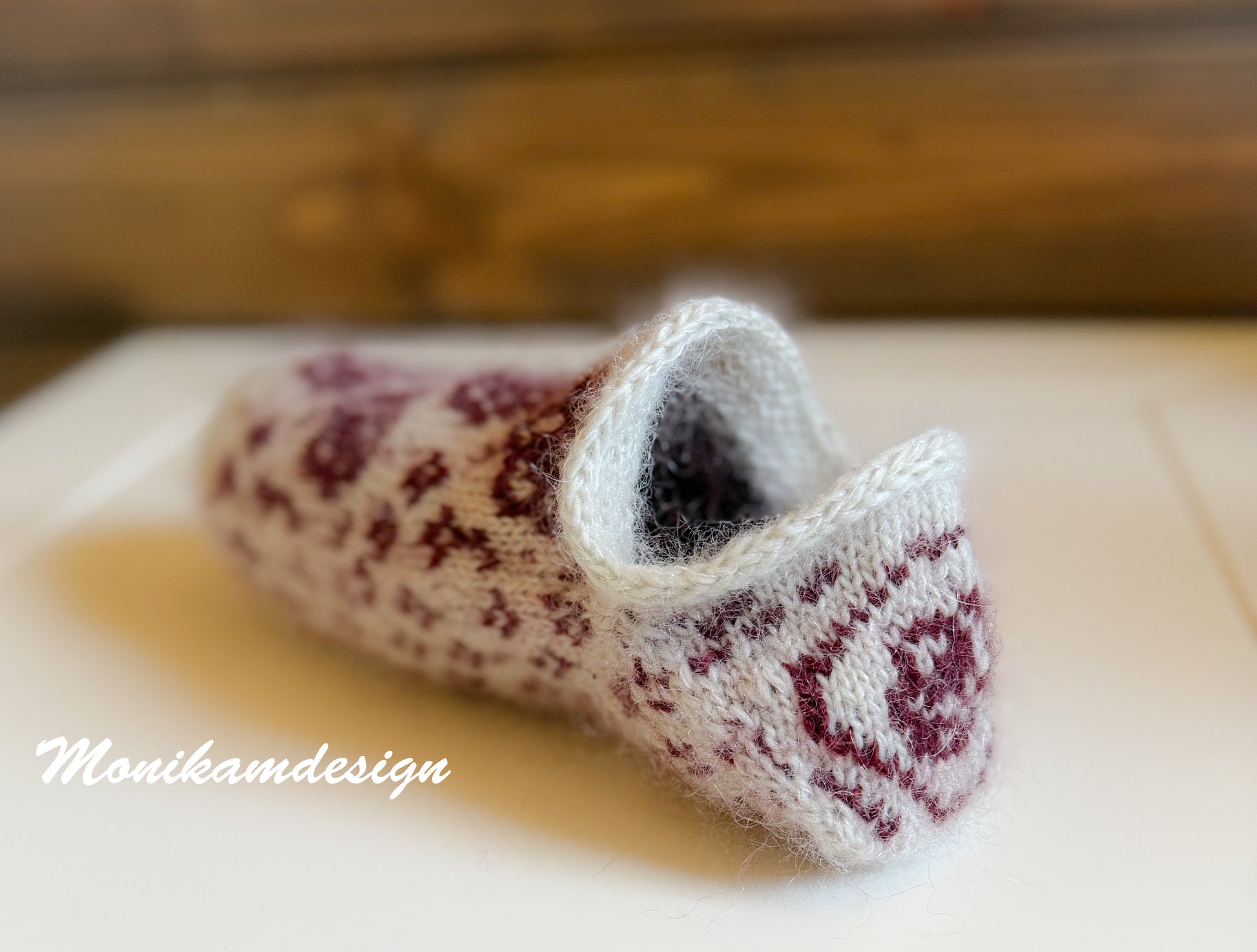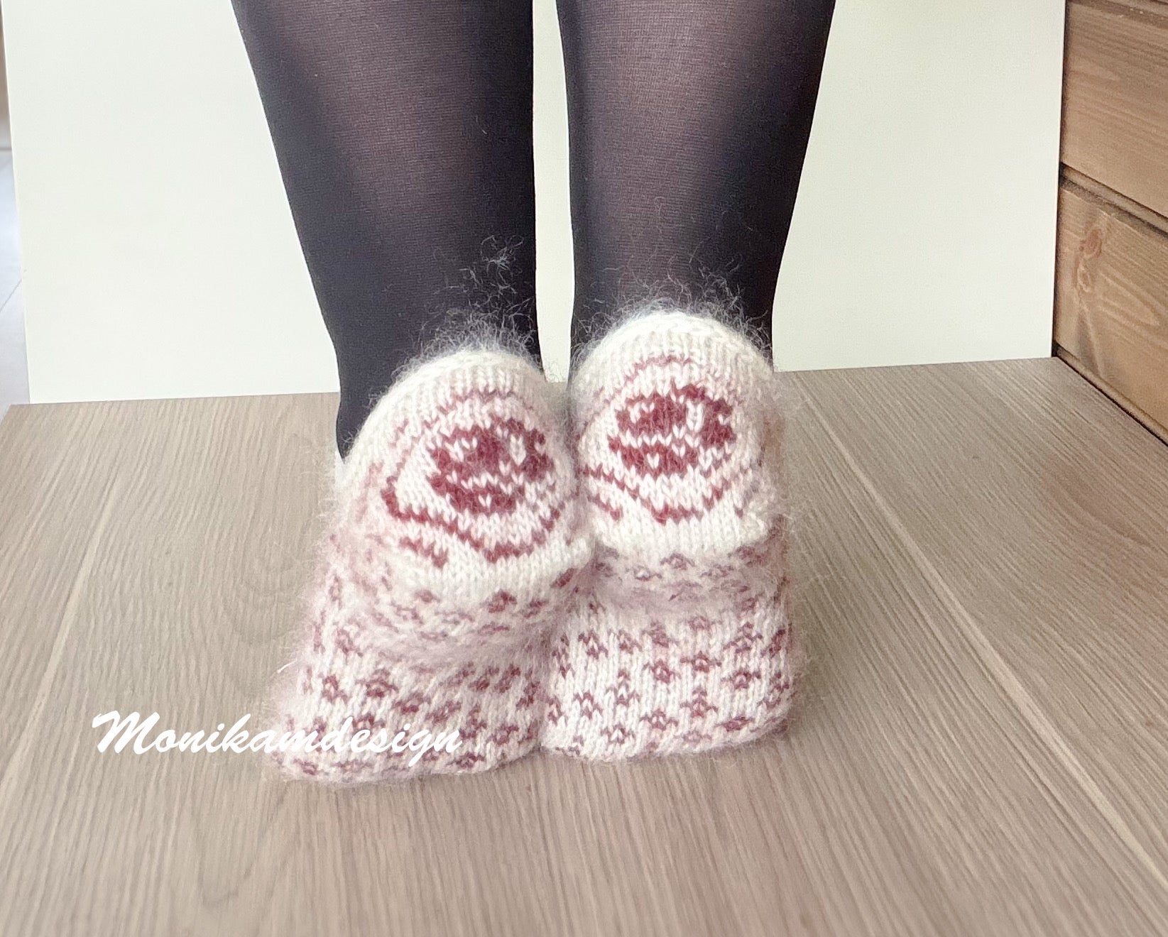 Disse tøflene er inspirert av verset Roser er røde. Jeg synes det er et fint lite vers som minner om da vi skrev i minnebøker til hverandre.