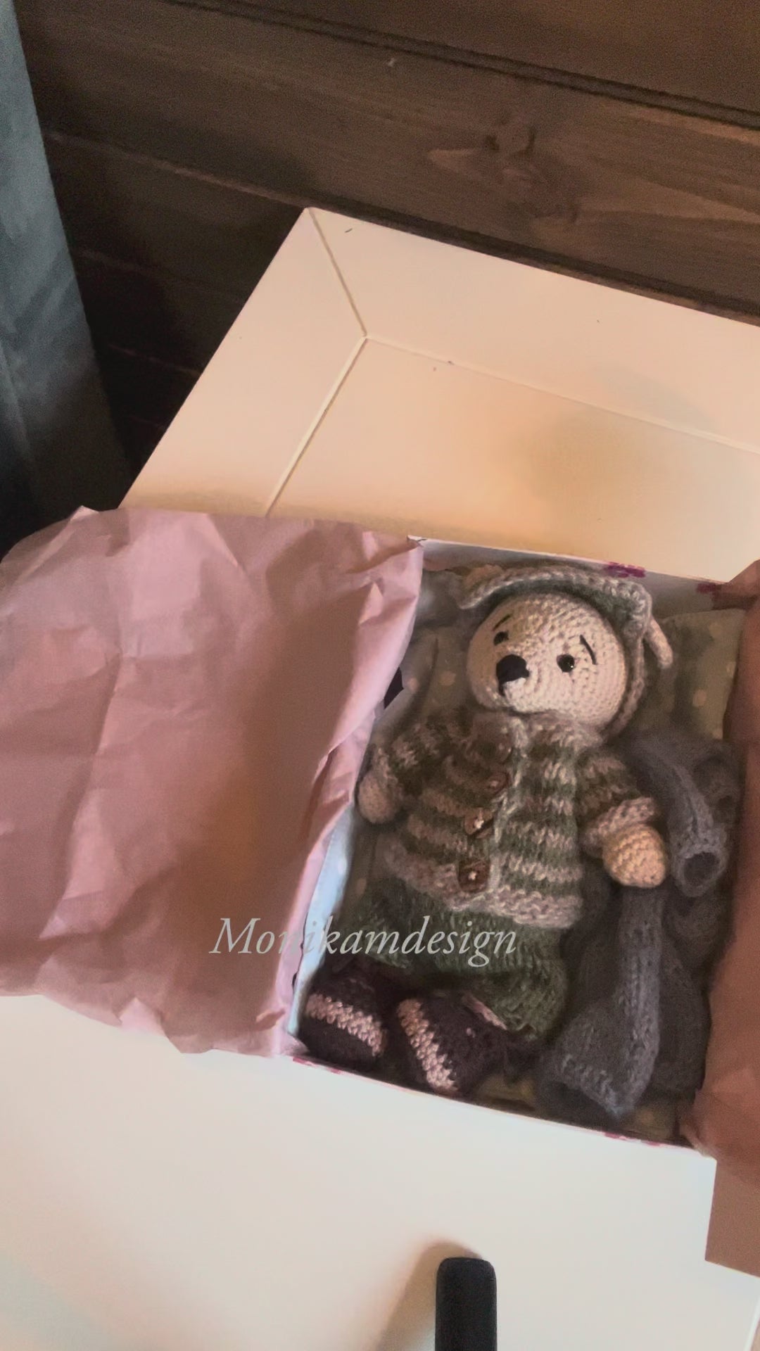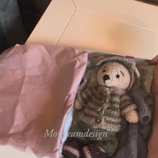 Bamsen leveres i en fin gaveeske og kommer med to sett klær samt en liten dyne, som gir mange lekemuligheter.